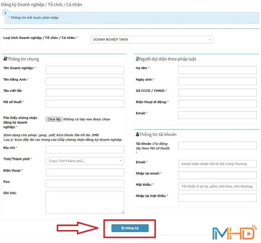 Đăng ký tài khoản trên Cổng dịch vụ công Bộ Công Thương tại địa chỉ: https://dichvucong.moit.gov.vn .