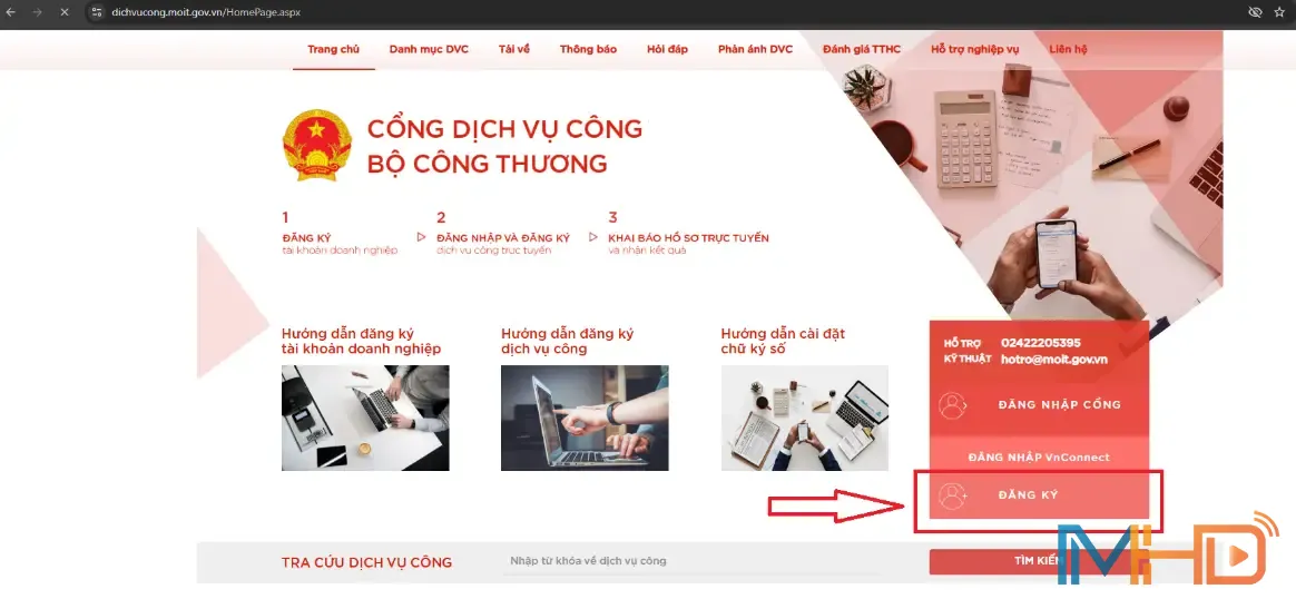 Khi tài khoản đã được duyệt, tiến hành đăng nhập tại: https://dichvucong.moit.gov.vn .