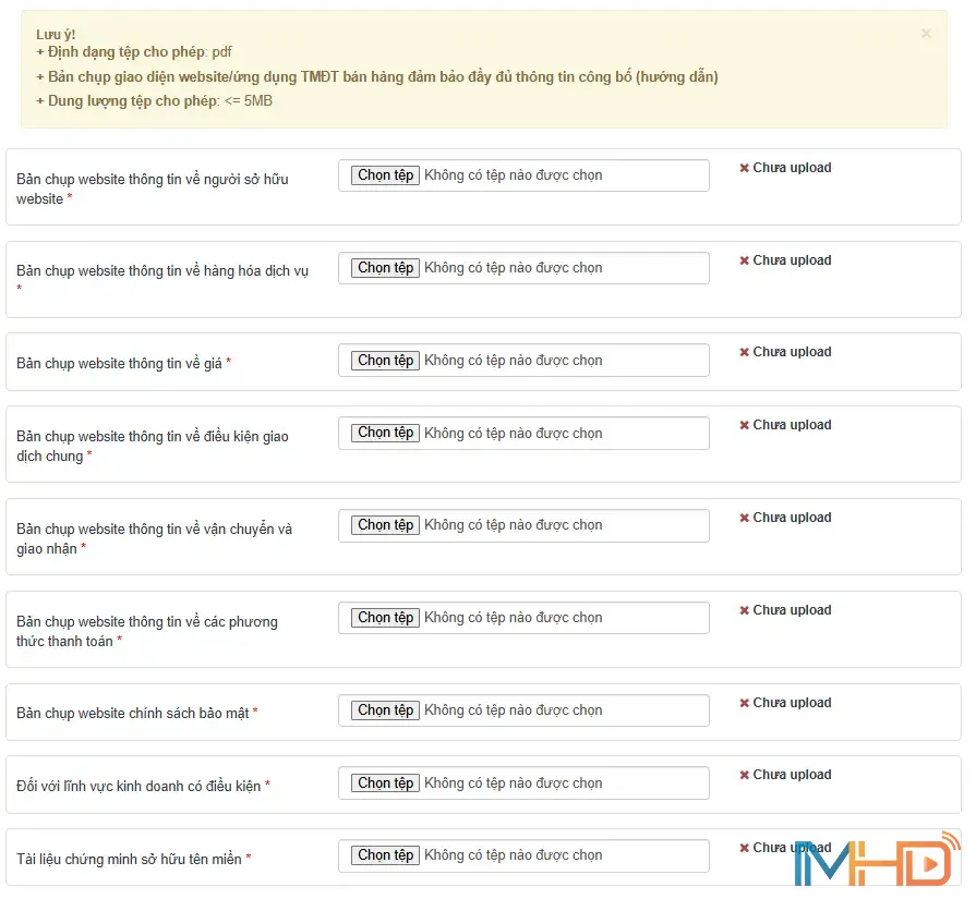 Bước 3: Điền thông tin website và tải file đính kèm