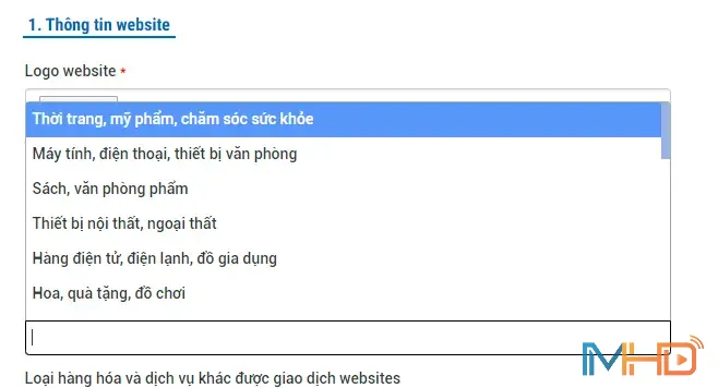 Chọn loại hàng hóa: Chọn nhóm hàng hóa phù hợp với hoạt động kinh doanh. Nếu hệ thống không có đúng nhóm ngành của doanh nghiệp, chọn mục “khác” .